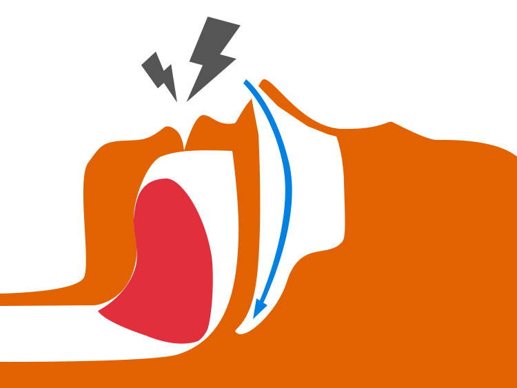 肥満などが原因で、大きくなった舌が気道を塞いでしまい、呼吸が妨げられています。