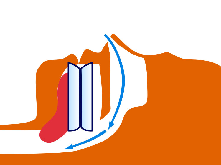気道が狭まる原因としては、寝ている時に舌の根の部分が下に沈んだ状態になり、気道を塞いでしまうことによって発生します。