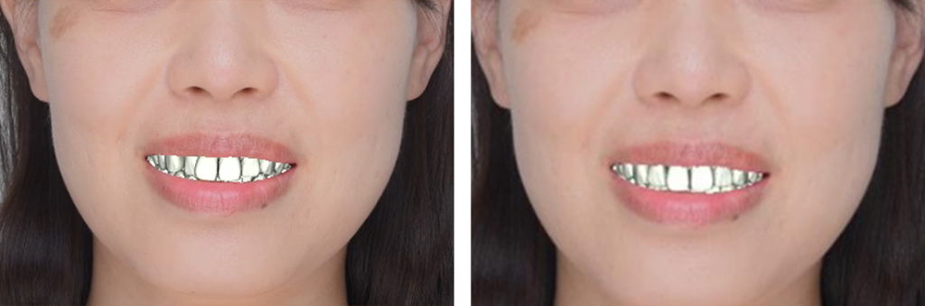 スマイル写真に3D模型を重ね合わせ、理想の位置に歯列を配置できます