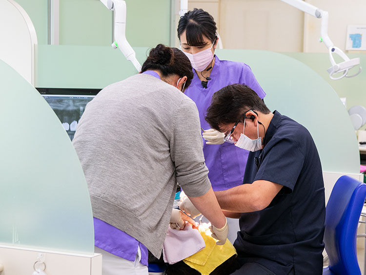 スタッフ数も急患さんや治療の延長に備え、出来る限り余裕が出るように配置しています。