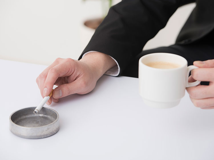 飲食による歯への着色がNo.1です。タバコはもちろん、コーヒー、紅茶、ウーロン茶、赤ワイン、コーラなどの飲み物、カレーなど香辛料の強い食べ物、チョコレートなど日常口にしているものでも色素が歯についてしまいます。また、口紅も注意が必要です。
